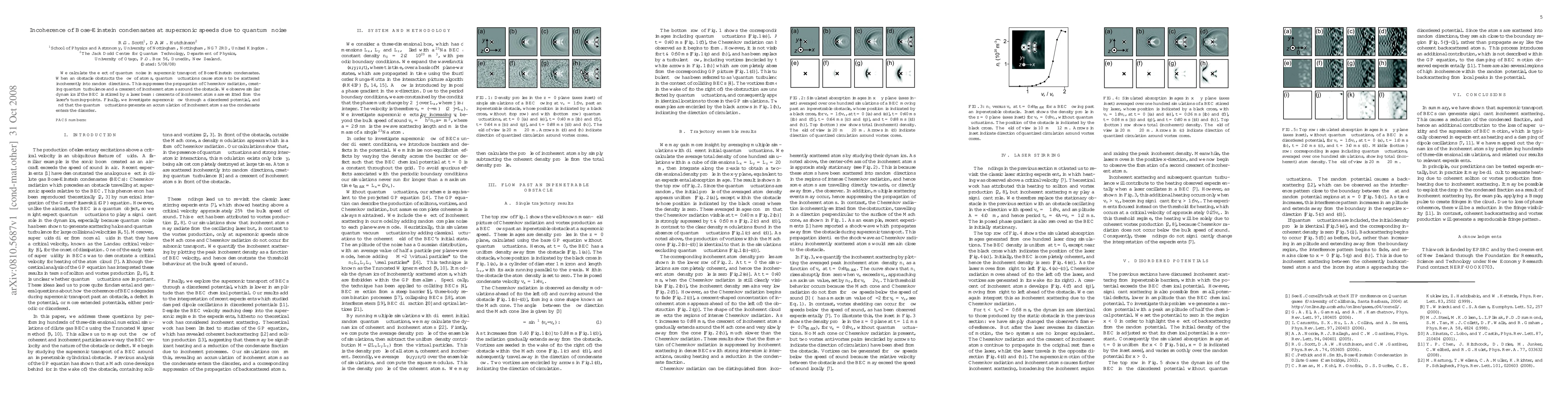 This paper investigates how quantum noise disrupts the coherence of Bose-Einstein condensates (BECs) when they move at supersonic speeds, leading to scattering and the formation of incoherent crescents around obstacles. The study also finds similar incoherent dynamics from laser stirring and accumulation of incoherent atoms in disordered potentials.