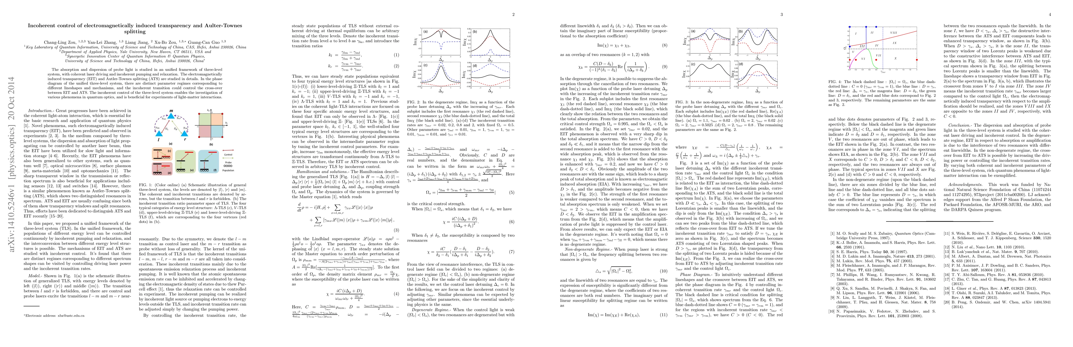 Summary: The research explores the effects of incoherent pumping and relaxation in a three-level system, demonstrating how incoherent control can influence the crossover between electromagnetically induced transparency and Autler-Townes splitting, offering new insights into quantum optics and light-matter interactions.