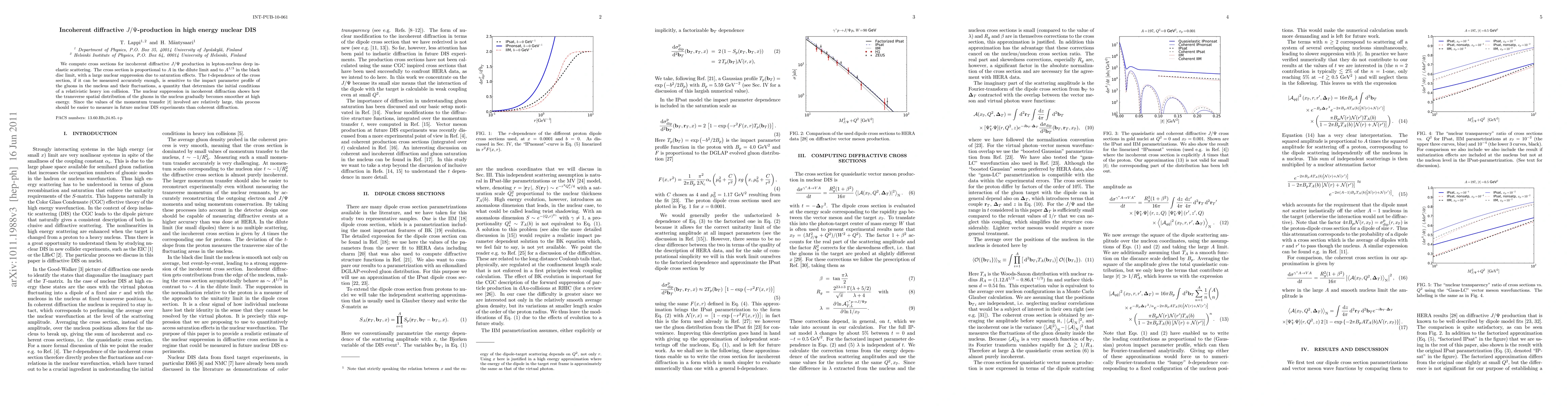 This paper calculates cross sections for incoherent diffractive J/Psi production in lepton-nucleus deep inelastic scattering, showing nuclear suppression due to gluon saturation. The t-dependence of the cross section reveals details about gluon distribution and fluctuations in the nucleus, which are crucial for understanding initial conditions in relativistic heavy ion collisions.