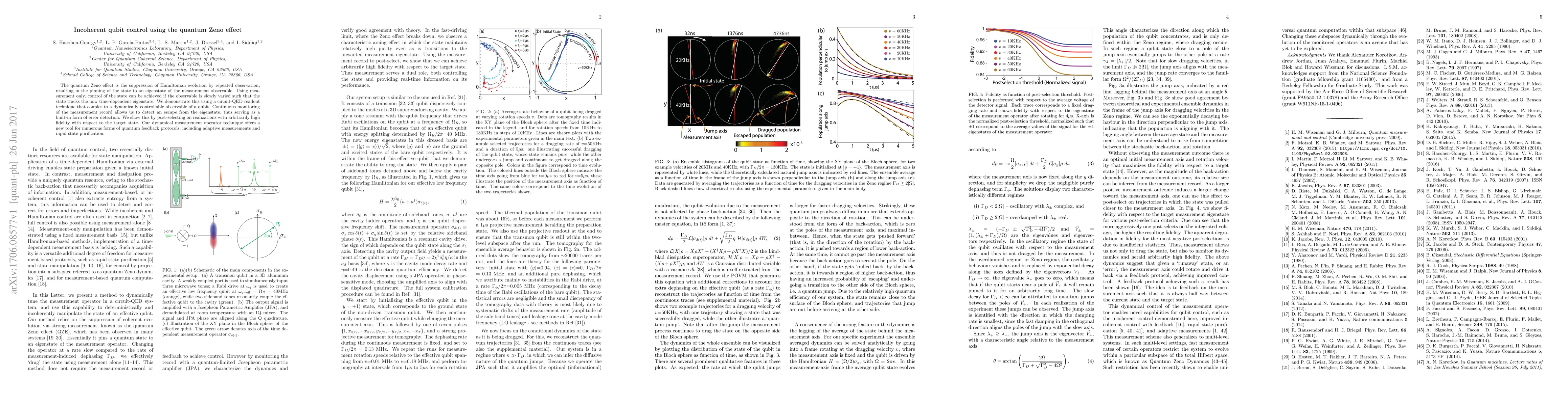 The paper presents a novel method for incoherent qubit control using the quantum Zeno effect, facilitated by a circuit-QED readout technique that dynamically controls a qubit's observable.