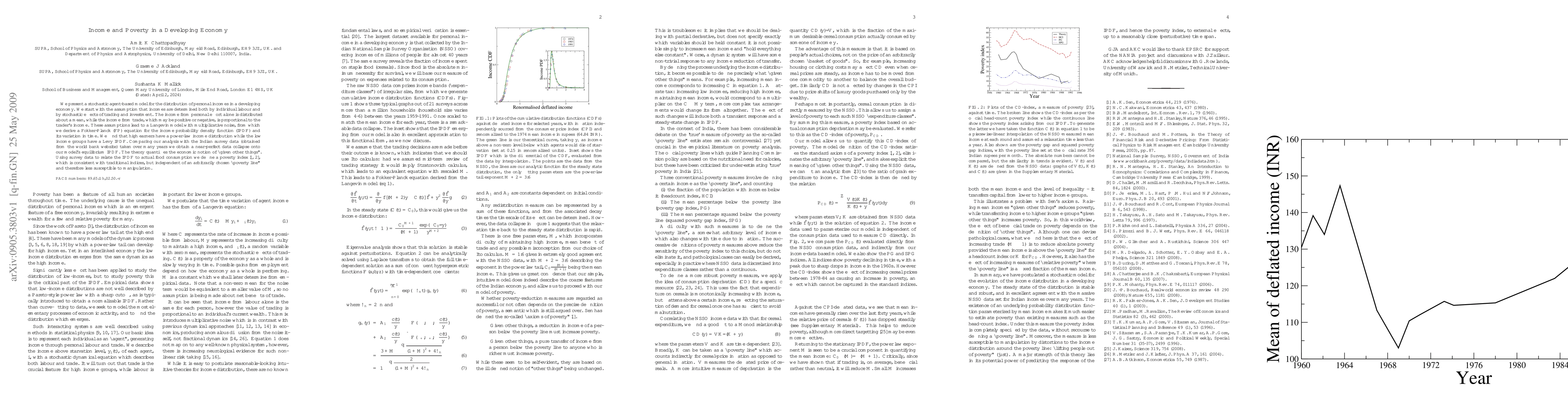 We present a stochastic agent-based model for the distribution of personal incomes in a developing economy. We start with the assumption that incomes are determined both by individual labour and by stochastic effects of trading and investment. The income from personal effort alone is distributed about a mean, while the income from trade, which may be positive or negative, is proportional to the trader's income. These assumptions lead to a Langevin model with multiplicative noise, from which we derive a Fokker-Planck (FP) equation for the income probability density function (IPDF) and its variation in time. We find that high earners have a power-law income distribution while the low income groups have a Levy IPDF. Comparing our analysis with the Indian survey data (obtained from the world bank website) taken over many years we obtain a near-perfect data collapse onto our model's equilibrium IPDF. The theory quantifies the economic notion of "given other things". Using survey data to relate the IPDF to actual food consumption we define a poverty index, which is consistent with traditional indices, but independent of an arbitrarily chosen "poverty line" and therefore less susceptible to manipulation.