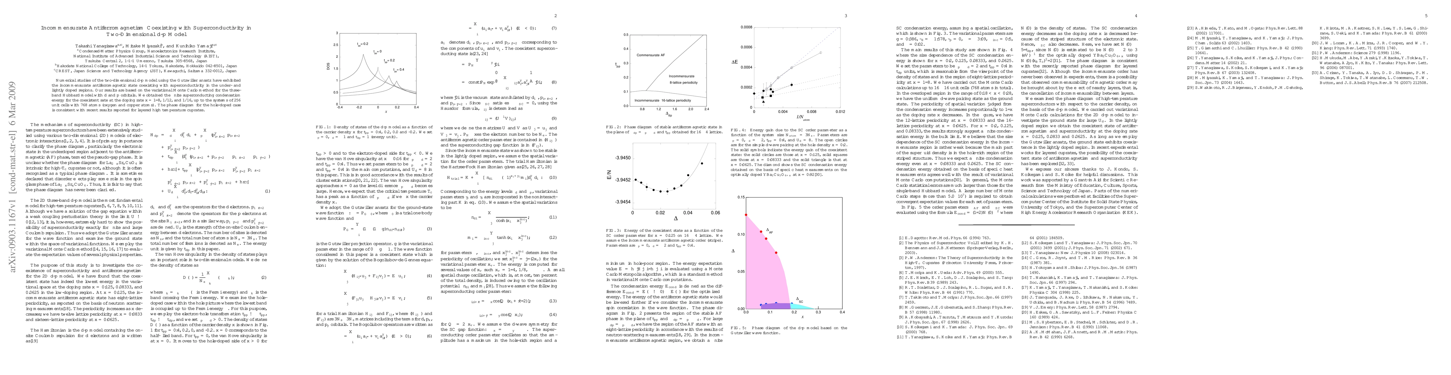 Researchers found incommensurate antiferromagnetism coexisting with superconductivity in a two-dimensional d-p model under certain doping conditions. They observed a finite superconducting condensation energy at specific doping rates using the Gutzwiller ansatz and variational Monte Carlo method.