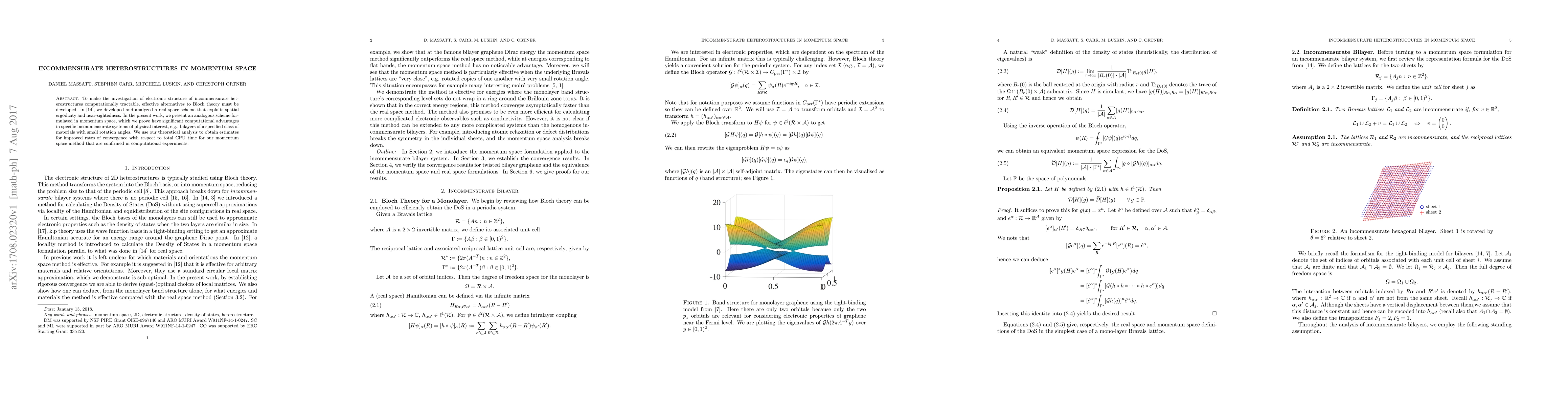 To make the investigation of electronic structure of incommensurate heterostructures computationally tractable, effective alternatives to Bloch theory must be developed. In Massatt2017, we developed and analyzed a real space scheme that exploits spatial ergodicity and near-sightedness. In the present work, we present an analogous scheme formulated in momentum space, which we prove have significant computational advantages in specific incommensurate systems of physical interest, e.g., bilayers of a specified class of materials with small rotation angles. We use our theoretical analysis to obtain estimates for improved rates of convergence with respect to total CPU time for our momentum space method that are confirmed in computational experiments.