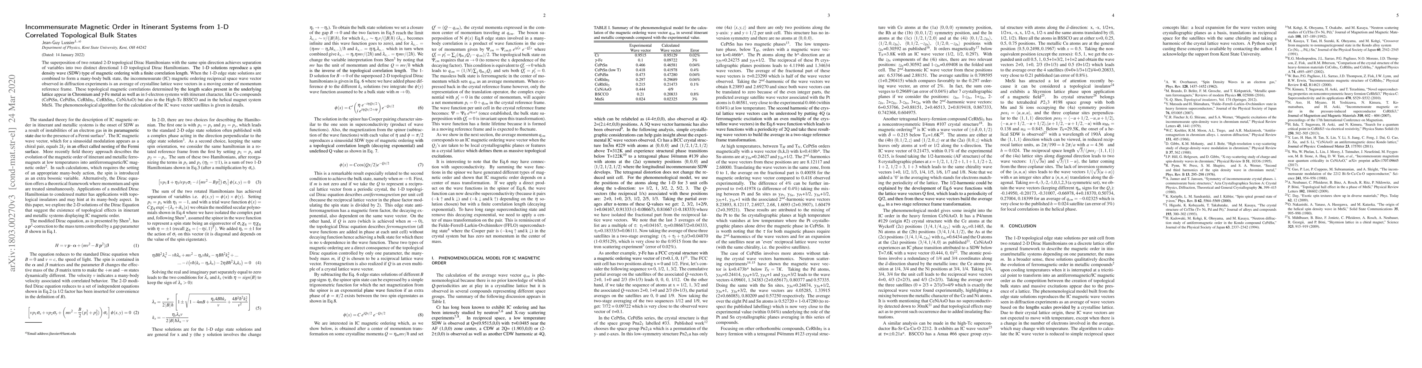 Researchers developed a model to explain incommensurate magnetic ordering in certain materials, which involves complex topological states and bulk fluctuations. The model is supported by a one-dimensional Dirac Hamiltonian and has implications for understanding long-range material behavior.