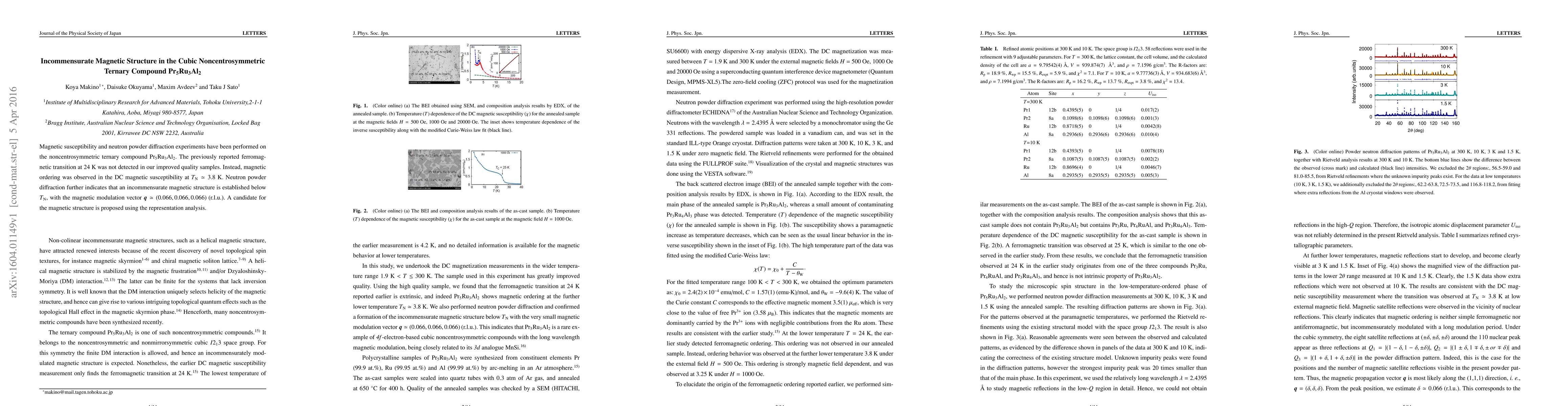 Researchers studied Pr5Ru3Al2, a cubic compound with a noncentrosymmetric structure, and found an incommensurate magnetic structure at 3.8 K, proposing a block helical structure as its candidate configuration.