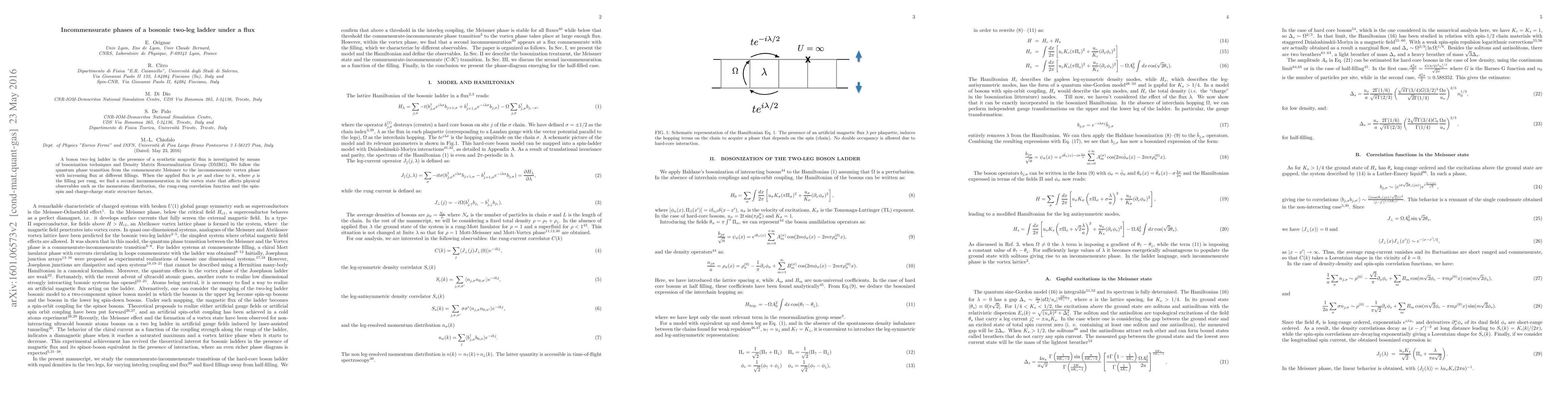 This paper investigates the quantum phase transition in a bosonic two-leg ladder under synthetic magnetic flux, revealing a transition from a commensurate Meissner to an incommensurate vortex phase. It identifies a secondary incommensuration near the critical flux, impacting observables like momentum distribution and correlation functions.