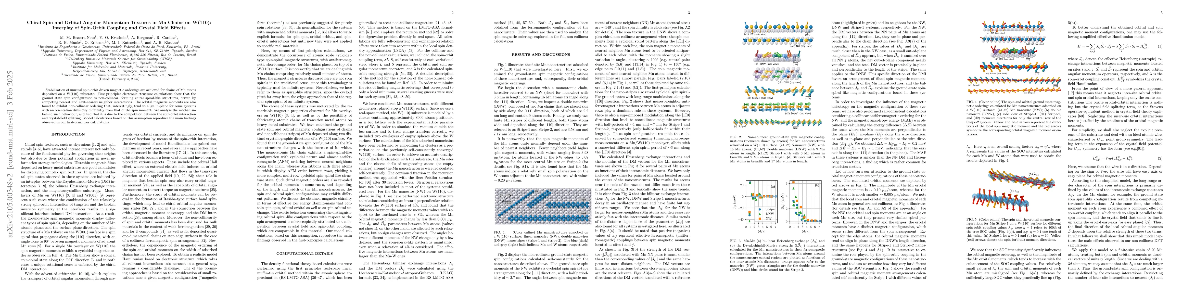 This paper investigates the magnetic ordering of Mn atomic chains on a W(110) surface, revealing non-collinear spin and orbital magnetism due to spin-orbit interactions and crystal-field splitting. First-principles calculations show that the spin configuration forms spirals, while the orbital moments exhibit incommensurate ordering, supported by model calculations.