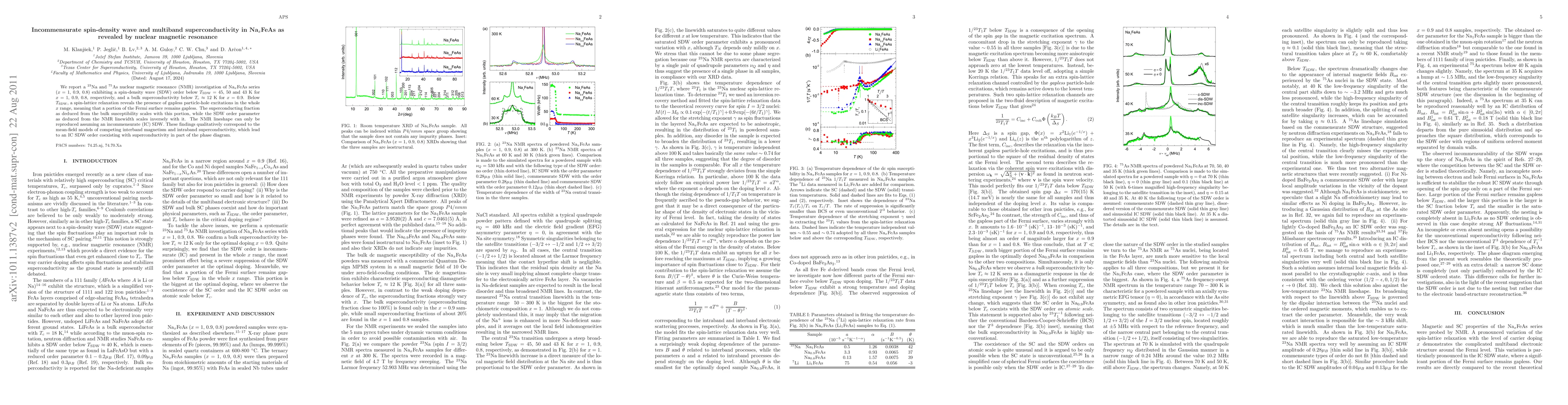 This study uses nuclear magnetic resonance (NMR) to investigate Na$_{x}$FeAs, revealing an incommensurate spin-density wave (SDW) below $T_{\rm SDW}$ and multiband superconductivity below $T_c$ for $x=0.9$. The NMR data suggest an incommensurate SDW coexists with a gapless portion of the Fermi surface, influencing the superconducting fraction.