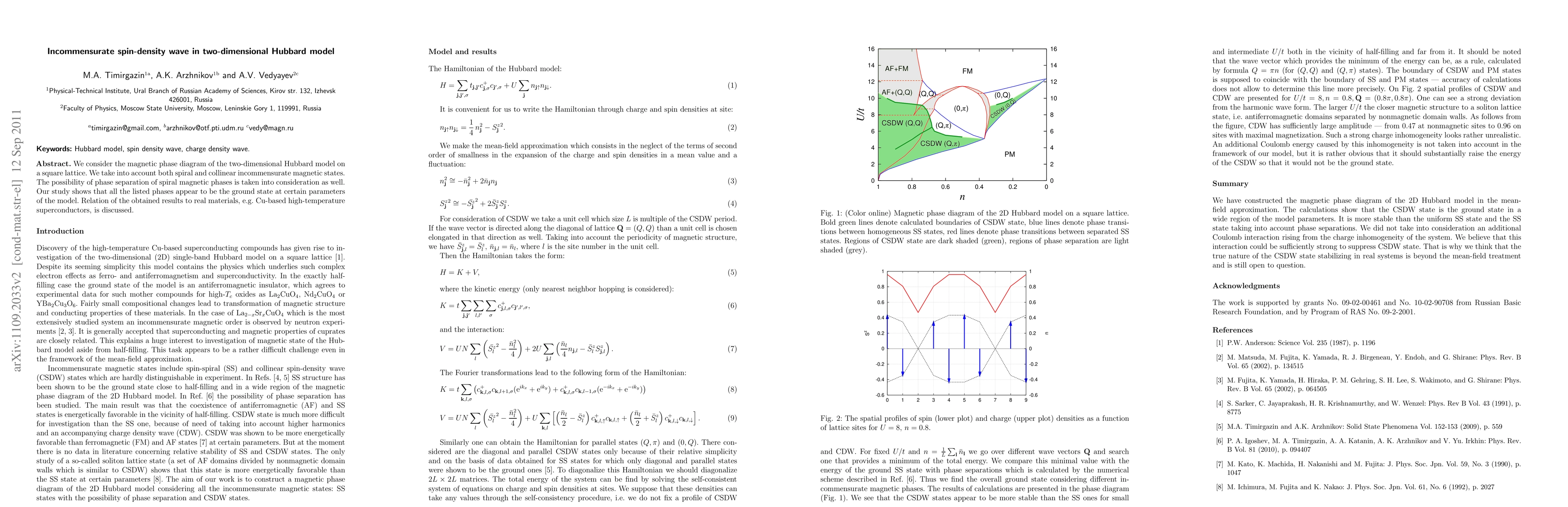 This research explores the magnetic phase diagram of the two-dimensional Hubbard model, identifying various incommensurate magnetic states, including spiral and collinear phases, and discusses their potential ground state conditions and relevance to real materials like Cu-based superconductors.