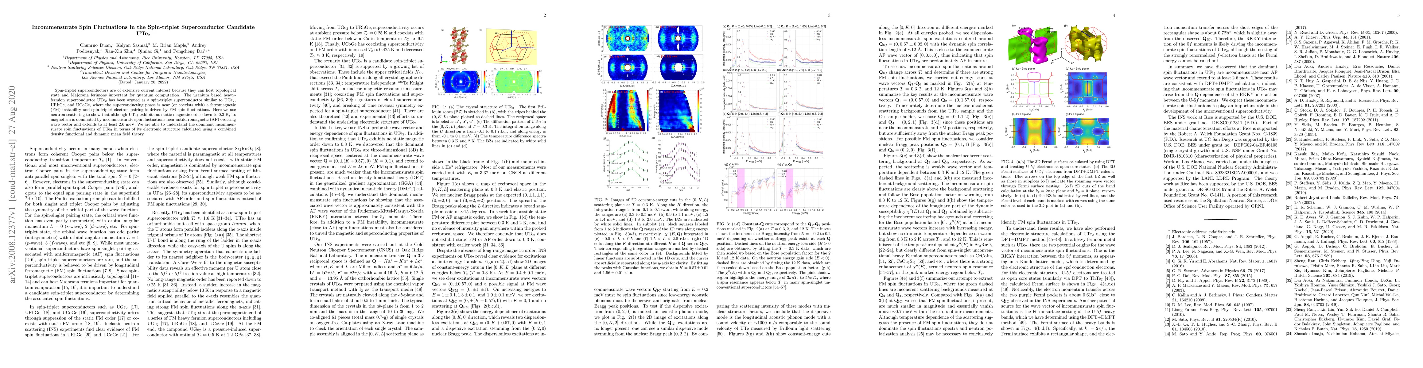 Neutron scattering reveals that the uranium-based superconductor UTe$_2$ exhibits incommensurate spin fluctuations, dominated near an antiferromagnetic ordering wave vector, despite no static magnetic order down to 0.3 K. These fluctuations align with its electronic structure, suggesting a spin-triplet superconducting pairing mechanism.