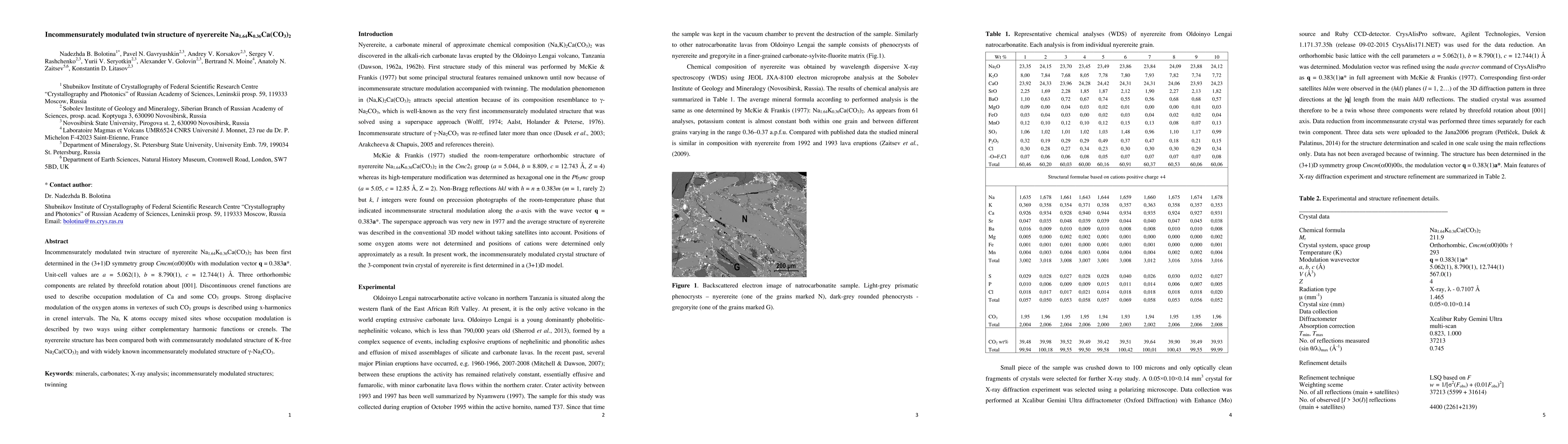 Researchers have discovered a new crystal structure for nyerereite with an incommensurately modulated twin structure that differs from previously known structures of K-free Na2Ca(CO3)2 and η-Na2CO3.