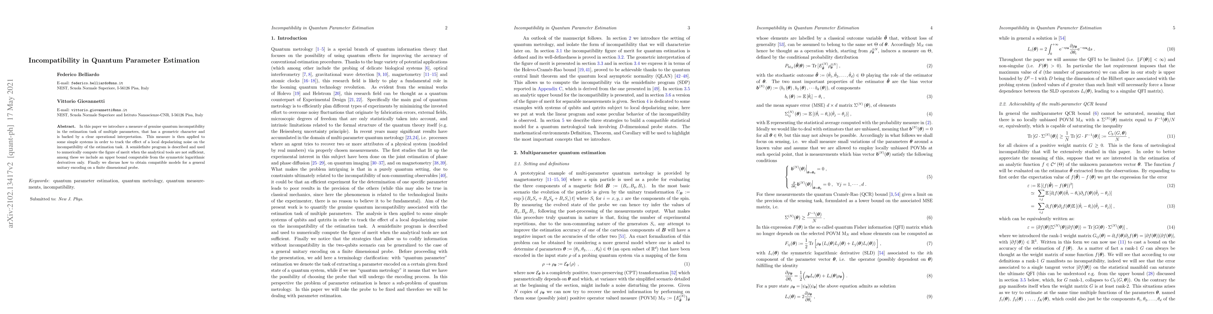 Researchers developed a measure of quantum incompatibility for parameter estimation tasks, tracking how noise affects these incompatibilities. This work provides new insights into the limits of quantum estimation and implications for encoding models.