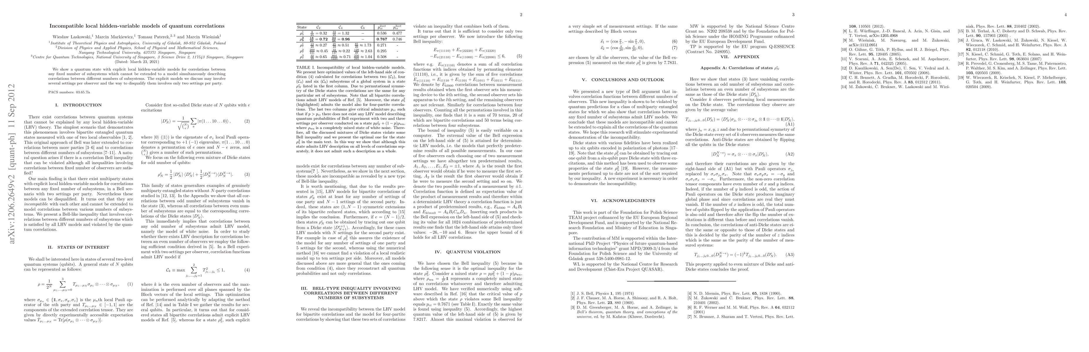 Summary: This paper demonstrates that quantum states can have local hidden-variable models for correlations among a fixed number of subsystems, but these models cannot be uniformly extended to describe correlations involving different subsystem counts. This highlights the incompatibility of such models across varying subsystem configurations.