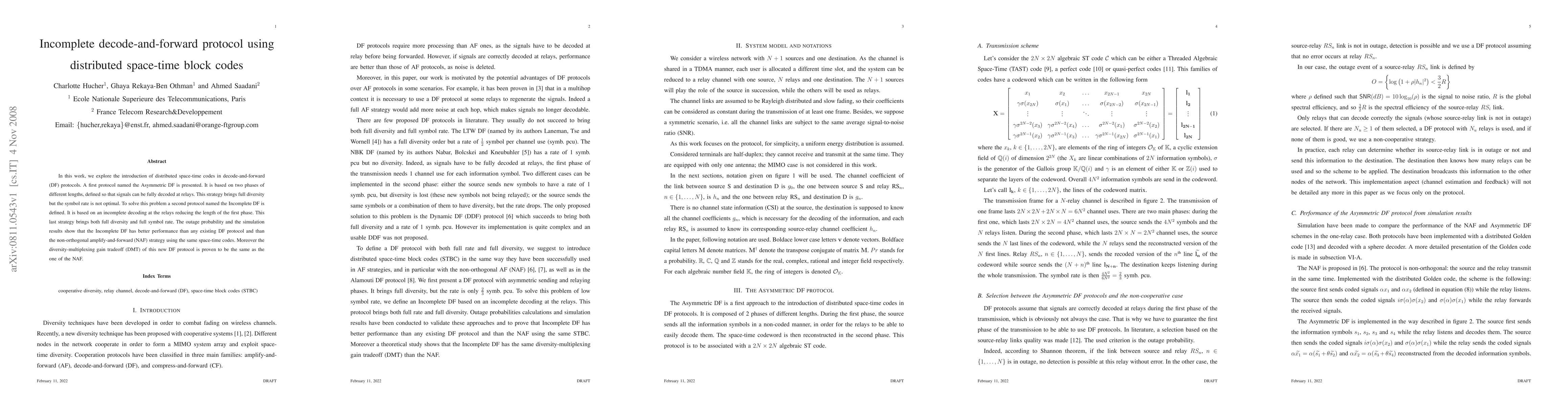 In this work, we explore the introduction of distributed space-time codes in decode-and-forward (DF) protocols. A first protocol named the Asymmetric DF is presented. It is based on two phases of different lengths, defined so that signals can be fully decoded at relays. This strategy brings full diversity but the symbol rate is not optimal. To solve this problem a second protocol named the Incomplete DF is defined. It is based on an incomplete decoding at the relays reducing the length of the first phase. This last strategy brings both full diversity and full symbol rate. The outage probability and the simulation results show that the Incomplete DF has better performance than any existing DF protocol and than the non-orthogonal amplify-and-forward (NAF) strategy using the same space-time codes. Moreover the diversity-multiplexing gain tradeoff (DMT) of this new DF protocol is proven to be the same as the one of the NAF.