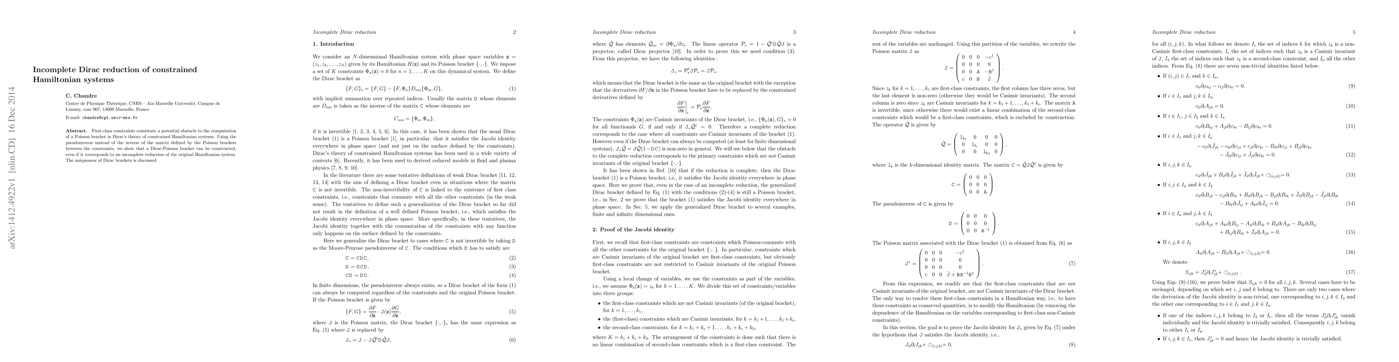 First-class constraints constitute a potential obstacle to the computation of a Poisson bracket in Dirac's theory of constrained Hamiltonian systems. Using the pseudoinverse instead of the inverse of the matrix defined by the Poisson brackets between the constraints, we show that a Dirac-Poisson bracket can be constructed, even if it corresponds to an incomplete reduction of the original Hamiltonian system. The uniqueness of Dirac brackets is discussed.