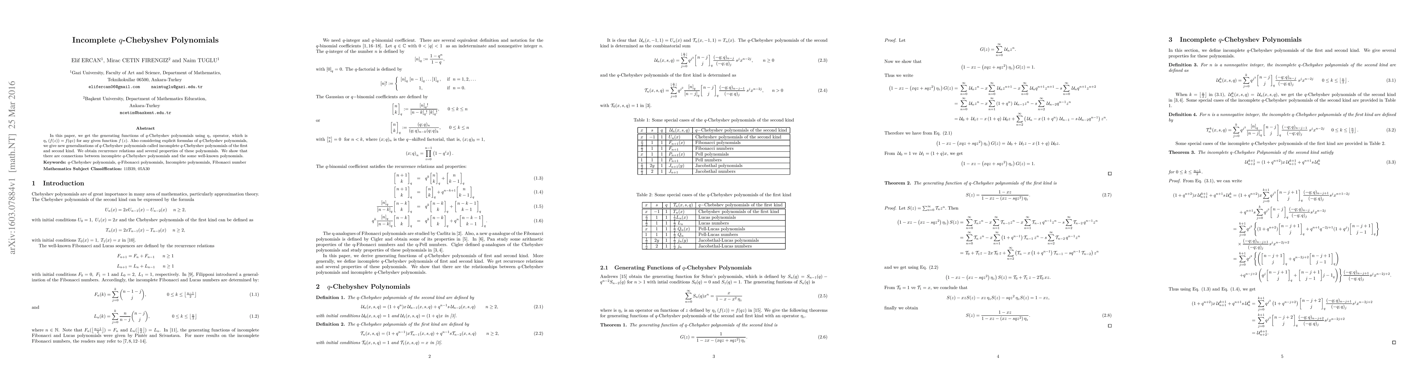This paper introduces generating functions for q-Chebyshev polynomials via an operator and proposes new incomplete q-Chebyshev polynomials of the first and second kinds, detailing their recurrence relations and properties. Connections to well-known polynomials are also explored.