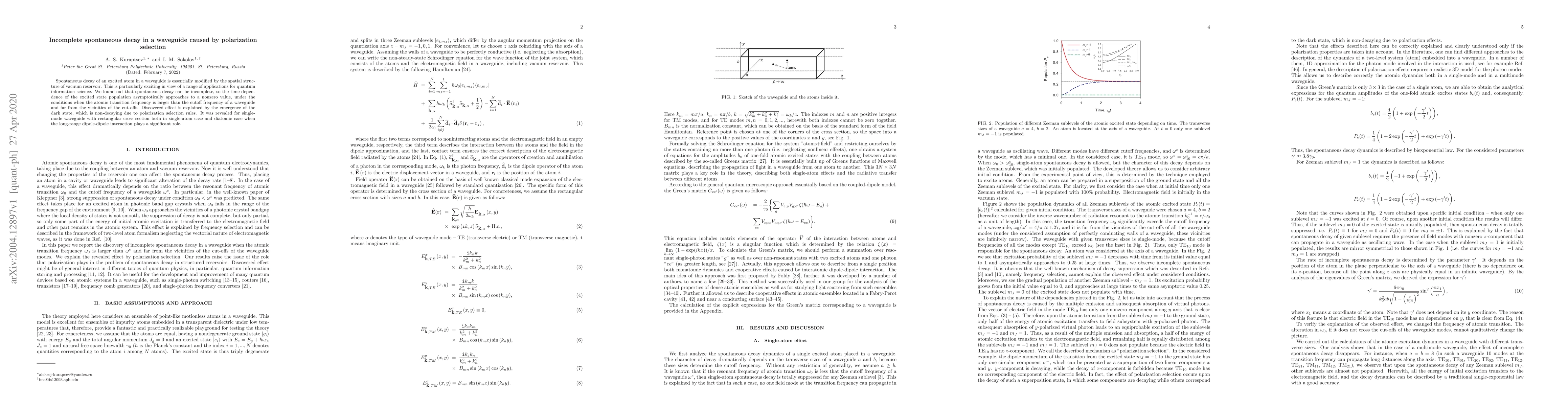This paper explores how the spontaneous decay of an excited atom in a waveguide is influenced by the waveguide's spatial structure, leading to incomplete decay due to the emergence of a dark state. This effect is significant when the atomic transition frequency exceeds the waveguide's cutoff frequency and is relevant for quantum information science applications.