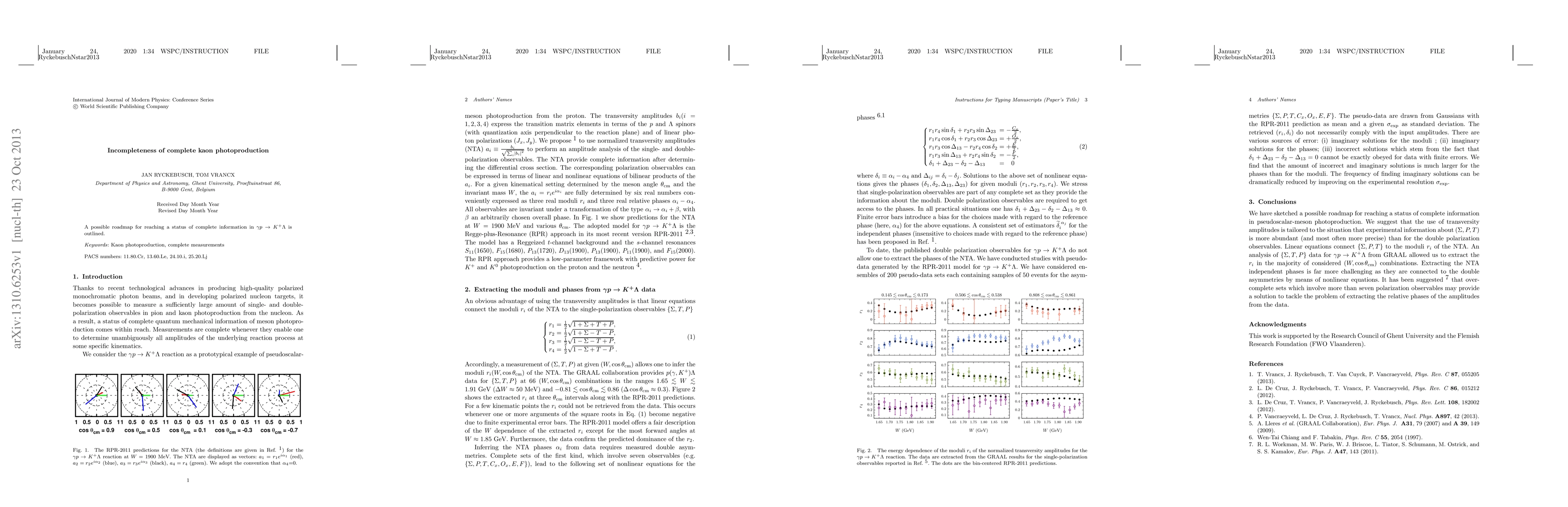 A possible roadmap for reaching a status of complete information in $\gamma p \rightarrow K^ {+} \Lambda$ is outlined.