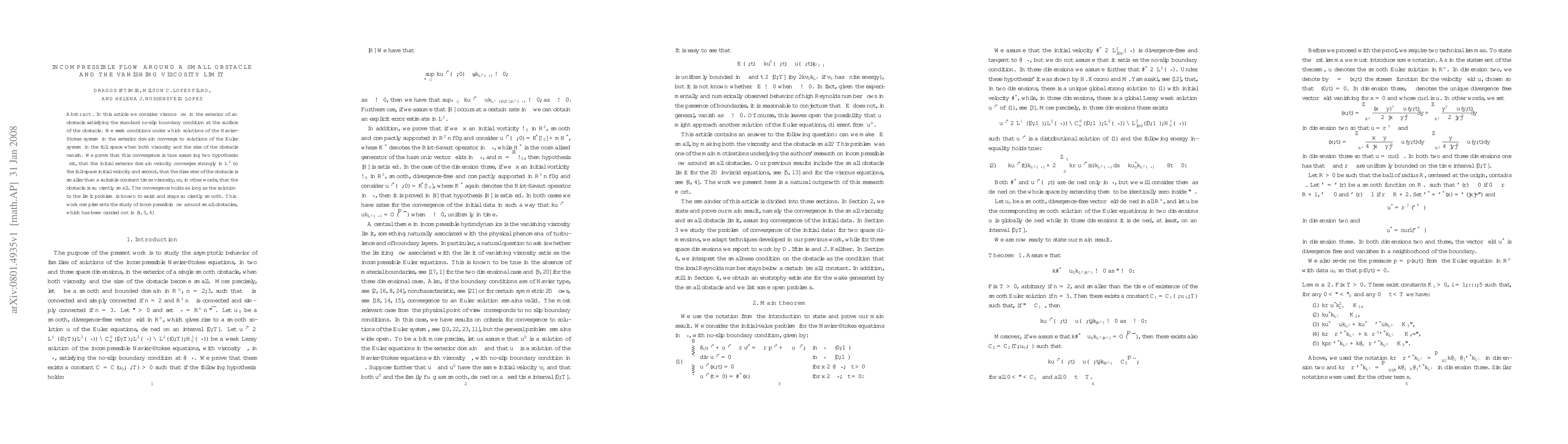 This paper investigates the convergence of viscous flow solutions around a small obstacle to the inviscid Euler flow as viscosity and obstacle size vanish. The authors prove this convergence under the conditions that the initial velocity converges strongly in $L^2$ and the obstacle is sufficiently small relative to the viscosity.