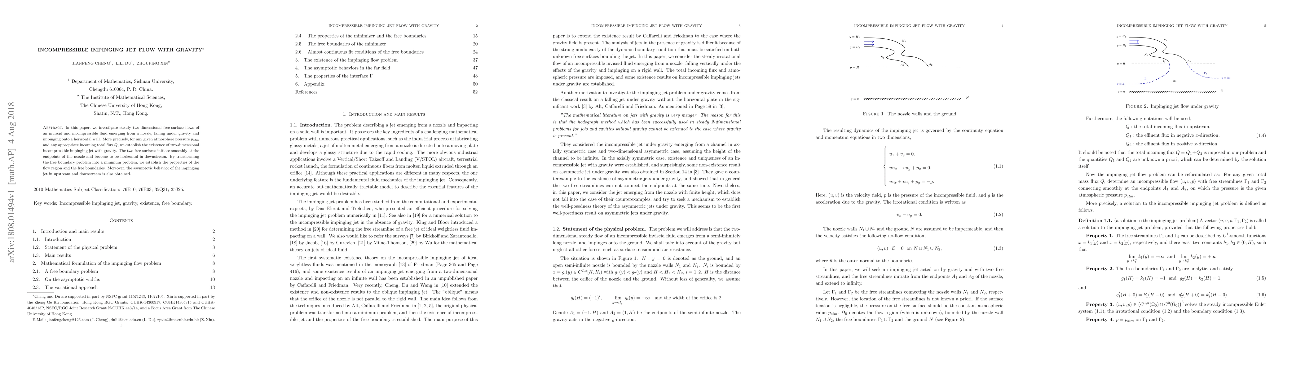This paper investigates the existence and properties of steady two-dimensional incompressible free-surface flows of an inviscid fluid from a nozzle under gravity, establishing the behavior of the jet as it impinges on a horizontal wall and transforming the free boundary problem into a minimum problem.