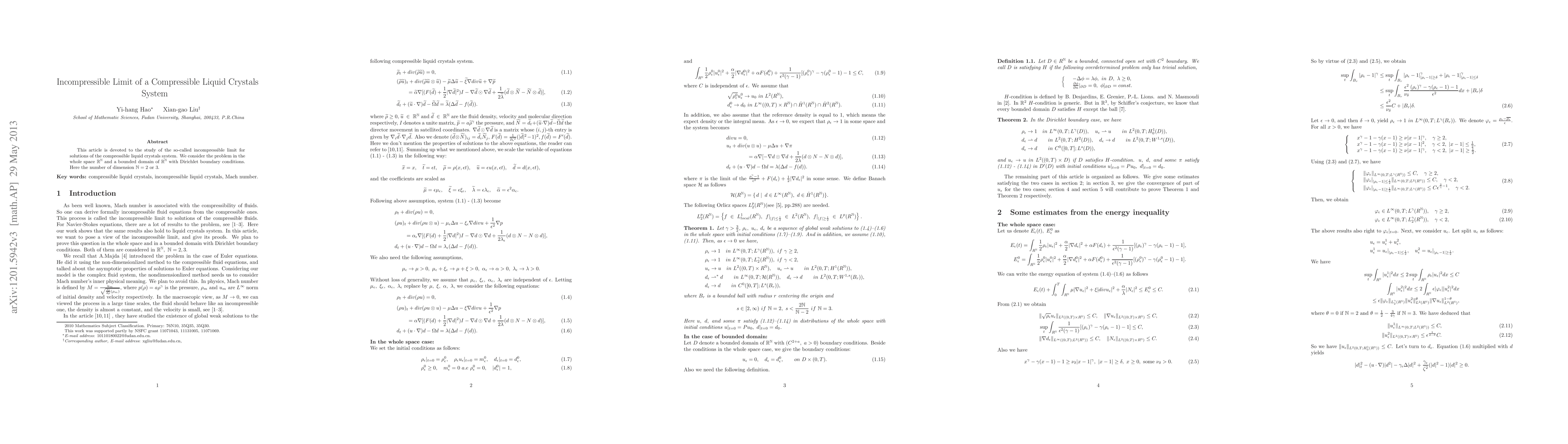 This paper investigates the incompressible limit of a compressible liquid crystals system in both whole space and bounded domains, focusing on dimensions $\mathbb{N}=2$ or 3, with Dirichlet boundary conditions. The study aims to understand the behavior of solutions as compressibility approaches zero.