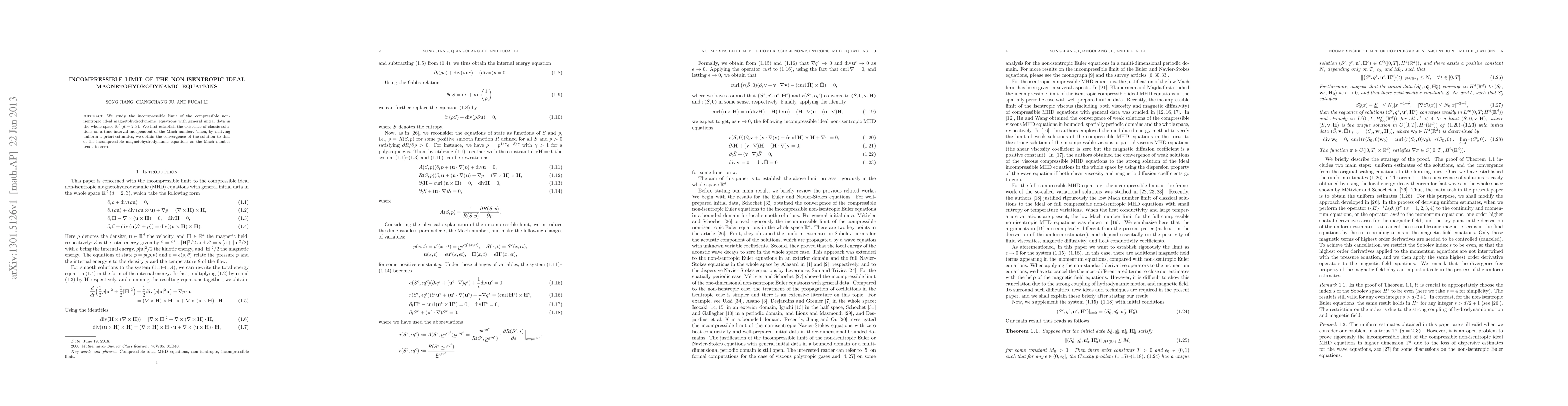 This paper investigates the incompressible limit of compressible non-isentropic ideal magnetohydrodynamic equations, proving the existence of classical solutions independent of the Mach number and demonstrating convergence to incompressible solutions as the Mach number approaches zero.