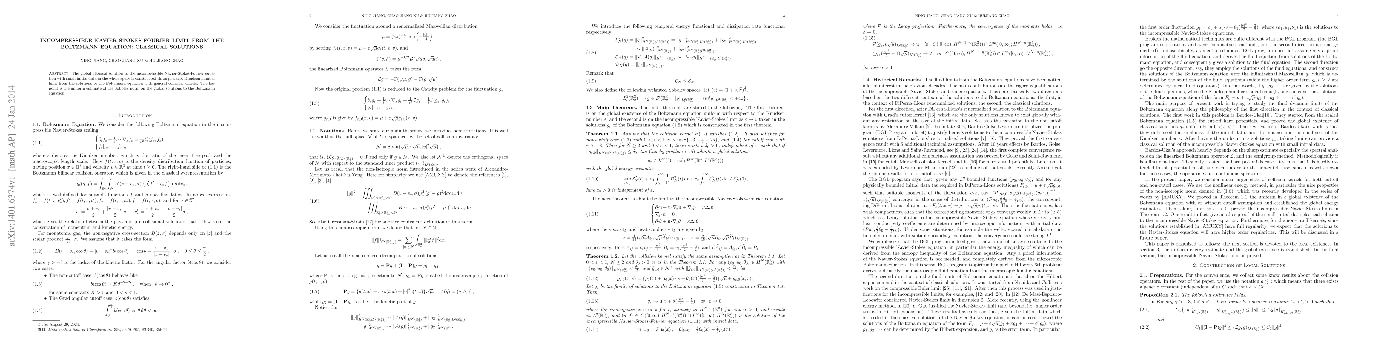 Summary: This paper constructs global classical solutions to the incompressible Navier-Stokes-Fourier equations via a zero Knudsen number limit from the Boltzmann equation, emphasizing uniform Sobolev norm estimates for the Boltzmann solutions.