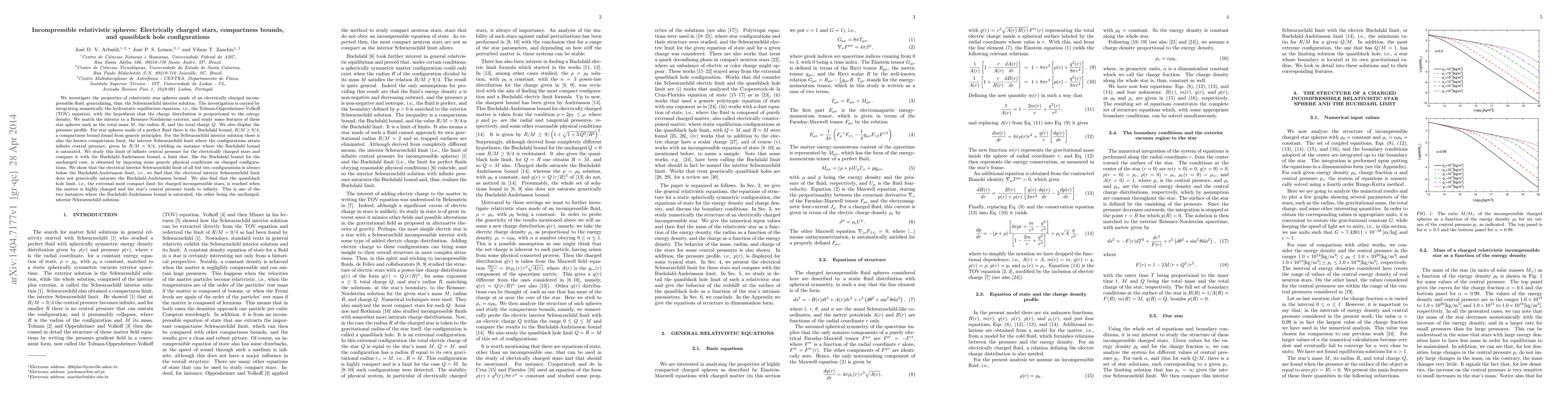 This paper studies incompressible, electrically charged relativistic stars by numerically solving the Tolman-Oppenheimer-Volkoff equation, comparing their properties to the Schwarzschild interior solution, and finding that the electrical interior limit generally does not saturate the Buchdahl-Andr\'easson bound, except in the extremal quasiblack hole configuration.