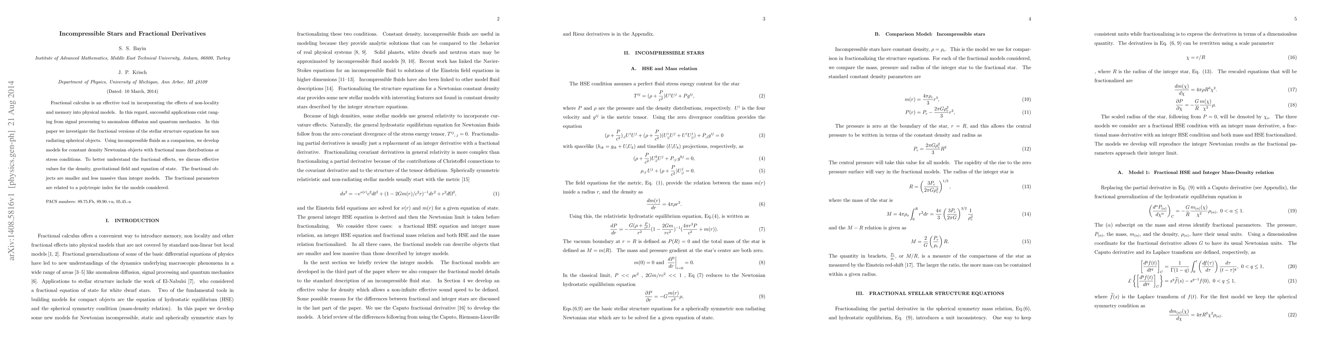 Fractional calculus is an effective tool in incorporating the effects of non-locality and memory into physical models. In this regard, successful applications exist rang- ing from signal processing to anomalous diffusion and quantum mechanics. In this paper we investigate the fractional versions of the stellar structure equations for non radiating spherical objects. Using incompressible fluids as a comparison, we develop models for constant density Newtonian objects with fractional mass distributions or stress conditions. To better understand the fractional effects, we discuss effective values for the density, gravitational field and equation of state. The fractional ob- jects are smaller and less massive than integer models. The fractional parameters are related to a polytropic index for the models considered.