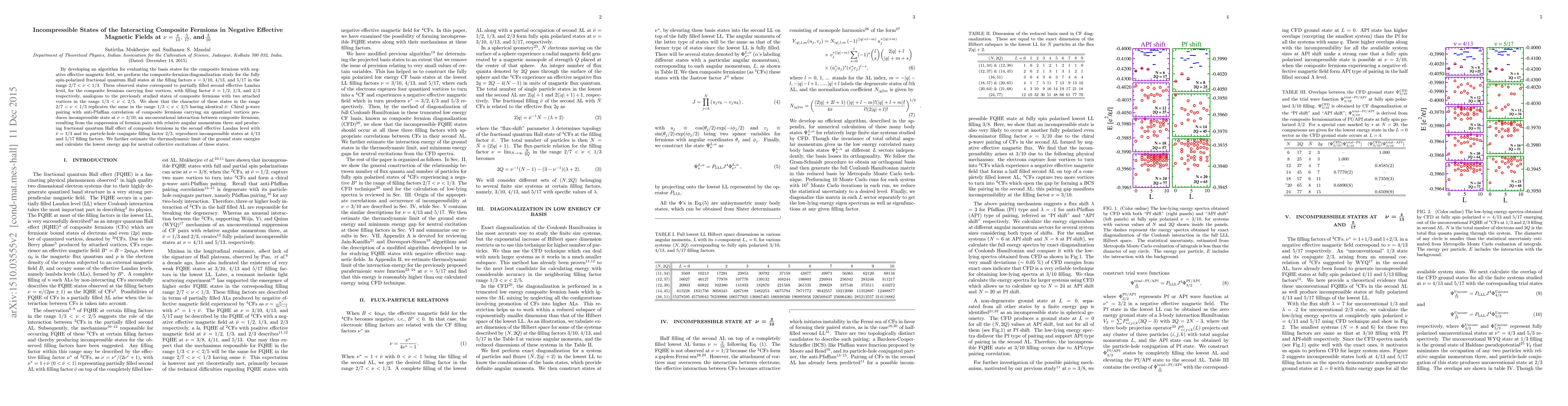 This paper develops an algorithm to study incompressible quantum Hall states at filling factors $\nu = 3/10$, 4/13, and 5/17 using composite fermions in negative effective magnetic fields. It finds that these states exhibit chiral p-wave pairing and unconventional interactions, leading to incompressible states analogous to those observed in the range $1/3 <\nu <2/5$.