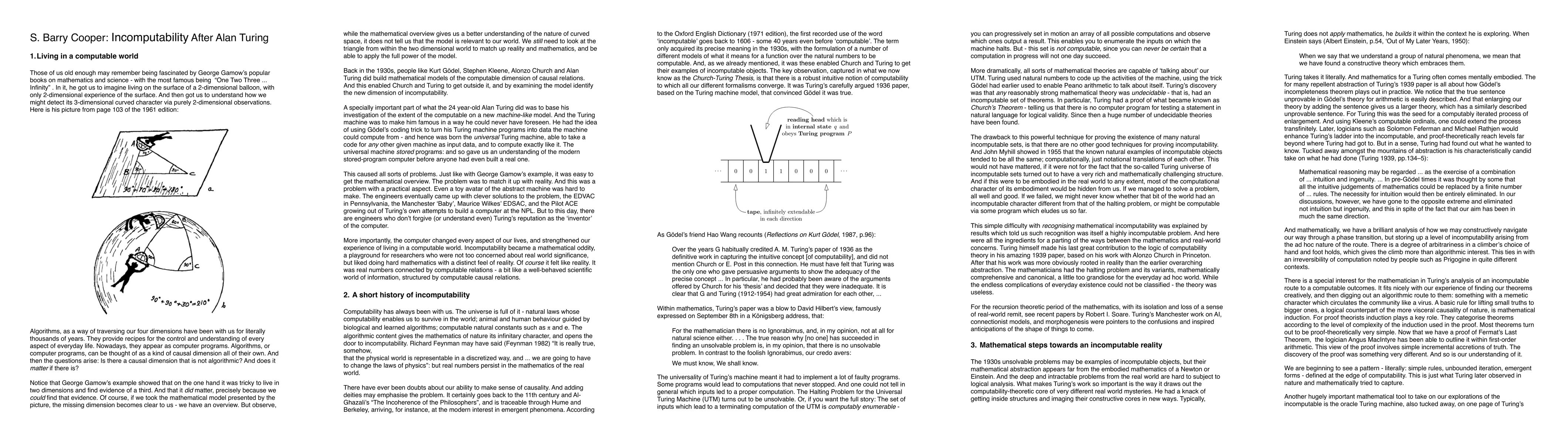 This paper examines the enduring significance of incomputability, a concept pioneered by Alan Turing and Alonzo Church, and its relevance across various fields beyond mathematics. It highlights Turing's prescient insights and the potential unforeseen consequences of incomputability in modern science and technology.
