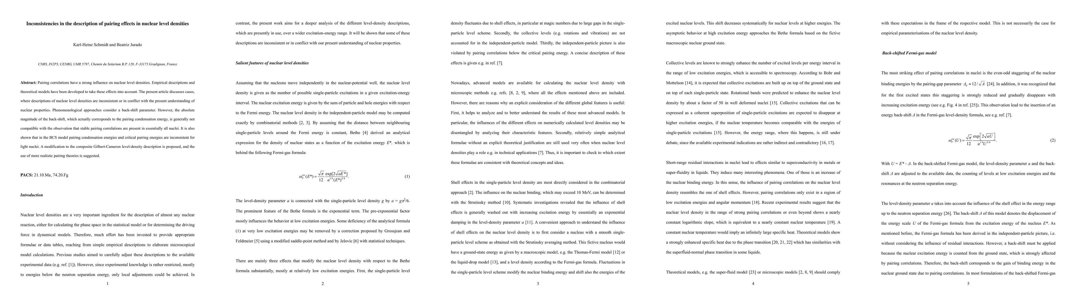 This paper identifies inconsistencies in the description of pairing effects in nuclear level densities, highlighting discrepancies between empirical models and theoretical understanding, particularly regarding the back-shift parameter and pairing condensation energies. It proposes a modification to the Gilbert-Cameron model and advocates for the use of more realistic pairing theories.