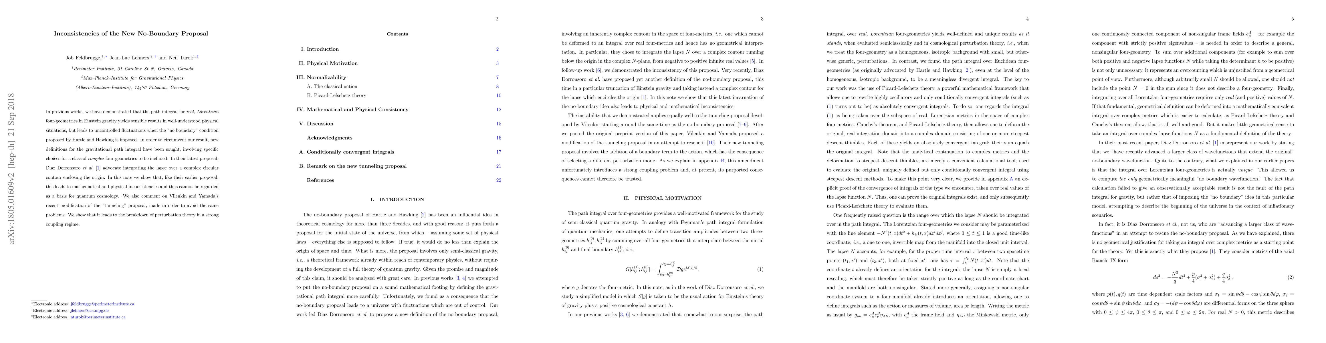 In previous works, we have demonstrated that the path integral for {\it real, Lorentzian} four-geometries in Einstein gravity yields sensible results in well-understood physical situations, but leads to uncontrolled fluctuations when the "no boundary" condition proposed by Hartle and Hawking is imposed. In order to circumvent our result, new definitions for the gravitational path integral have been sought, involving specific choices for a class of {\it complex} four-geometries to be included. In their latest proposal, Diaz Dorronsoro {\it et al.}~\cite{DiazDorronsoro:2018wro} advocate integrating the lapse over a complex circular contour enclosing the origin. In this note we show that, like their earlier proposal, this leads to mathematical and physical inconsistencies and thus cannot be regarded as a basis for quantum cosmology. We also comment on Vilenkin and Yamada's recent modification of the "tunneling" proposal, made in order to avoid the same problems. We show that it leads to the breakdown of perturbation theory in a strong coupling regime.