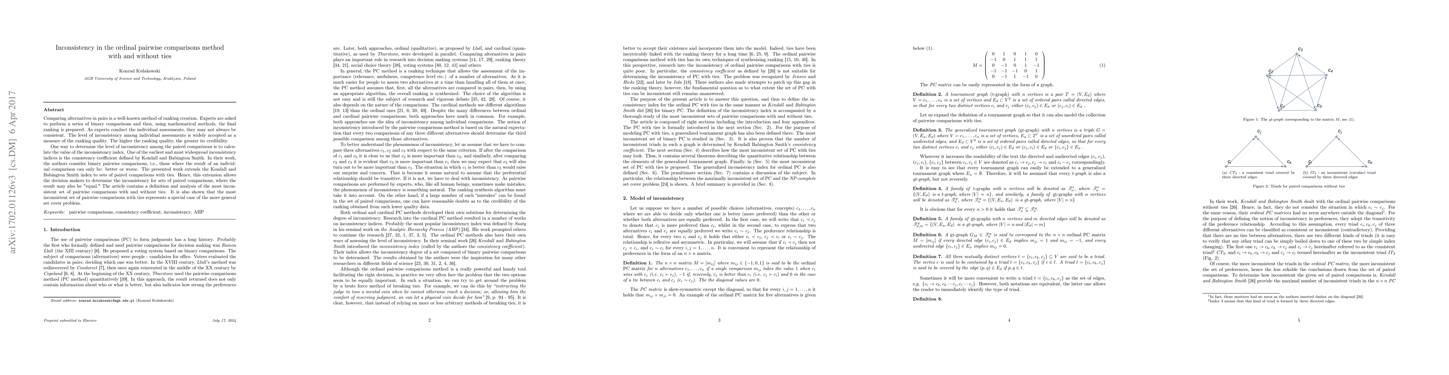 This paper extends Kendall and Babington Smith's inconsistency index to handle paired comparisons with ties, analyzing the inconsistency levels in both scenarios. It defines the most inconsistent sets of comparisons and relates the problem to the set cover problem.