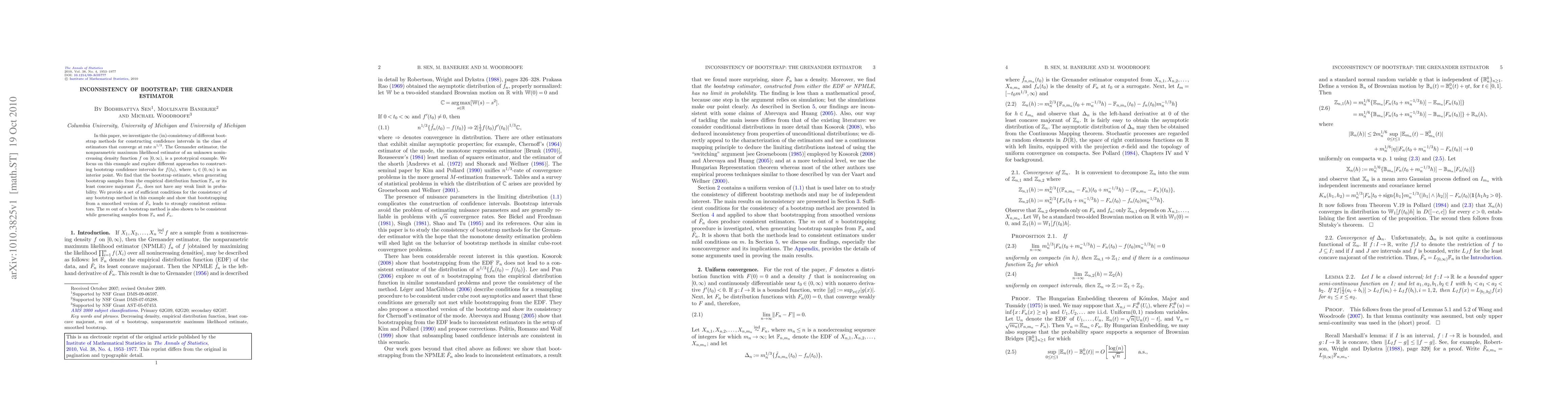 The paper derives conditions for the consistency of bootstrap methods, particularly for the Grenander estimator, and demonstrates that smoothing the least concave majorant can ensure consistency.