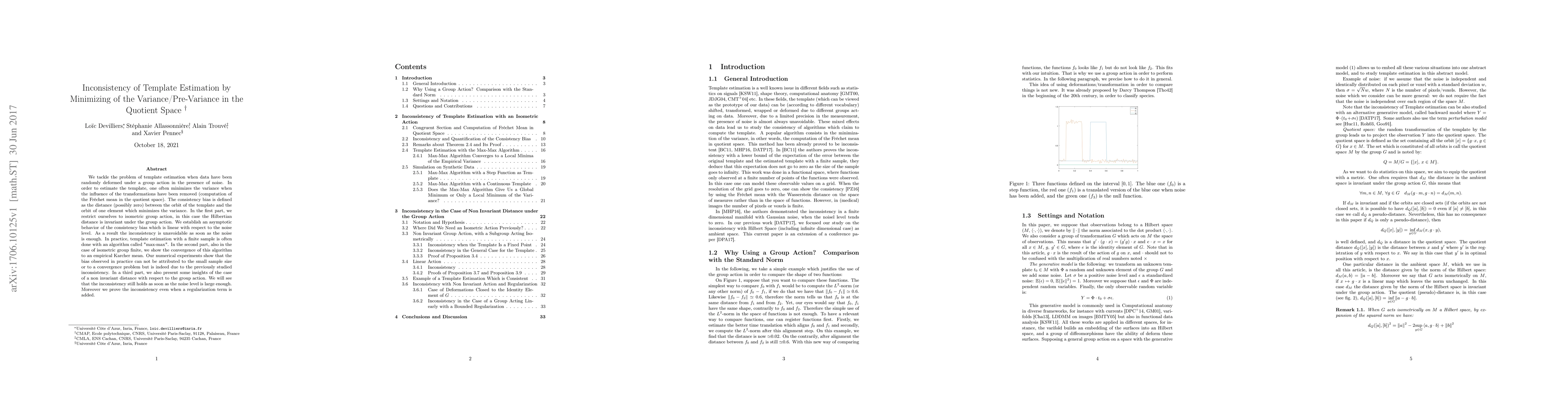 A research paper investigates the inconsistency of template estimation when data is randomly deformed under group action with noise, finding that the bias is linearly related to the noise level and unavoidable once noise exceeds a certain threshold.