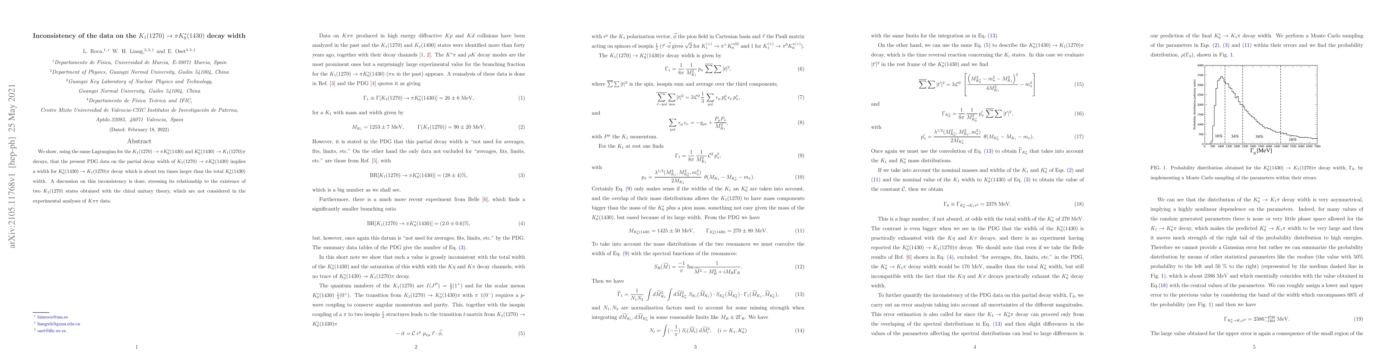 This paper identifies an inconsistency in the current PDG data regarding the decay width of $K_1(1270) \to \pi K^*_0(1430)$, suggesting a discrepancy that implies a much larger decay width for the reverse process. The authors attribute this inconsistency to the potential existence of two $K_1(1270)$ states not accounted for in existing experimental analyses.