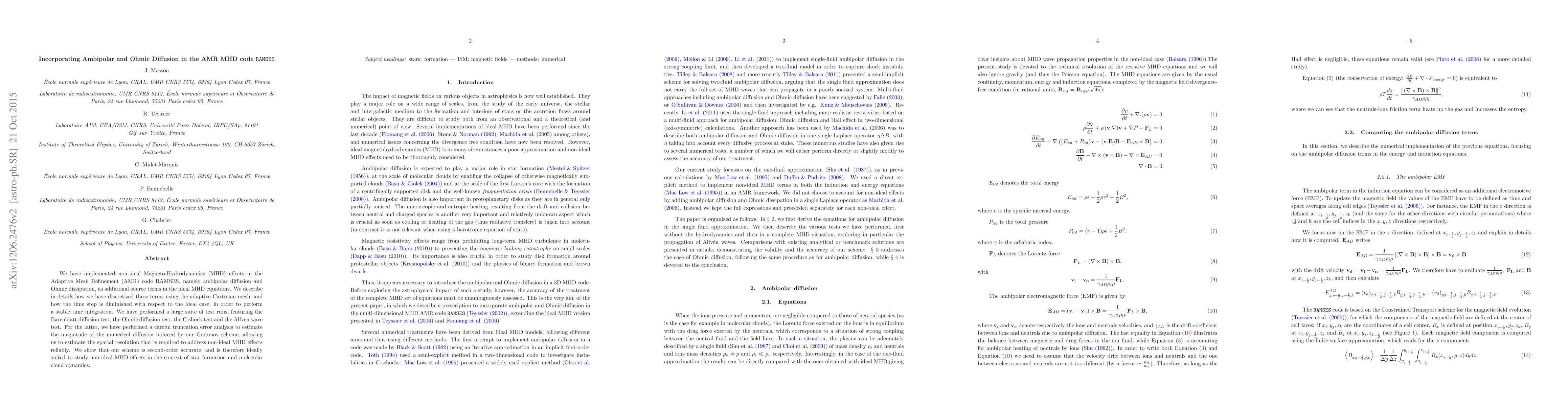This paper details the implementation of non-ideal MHD effects, including ambipolar diffusion and Ohmic dissipation, into the RAMSES AMR MHD code. The authors demonstrate their scheme's stability and accuracy through various tests, showing it is second-order accurate and suitable for studying star formation and molecular cloud dynamics.