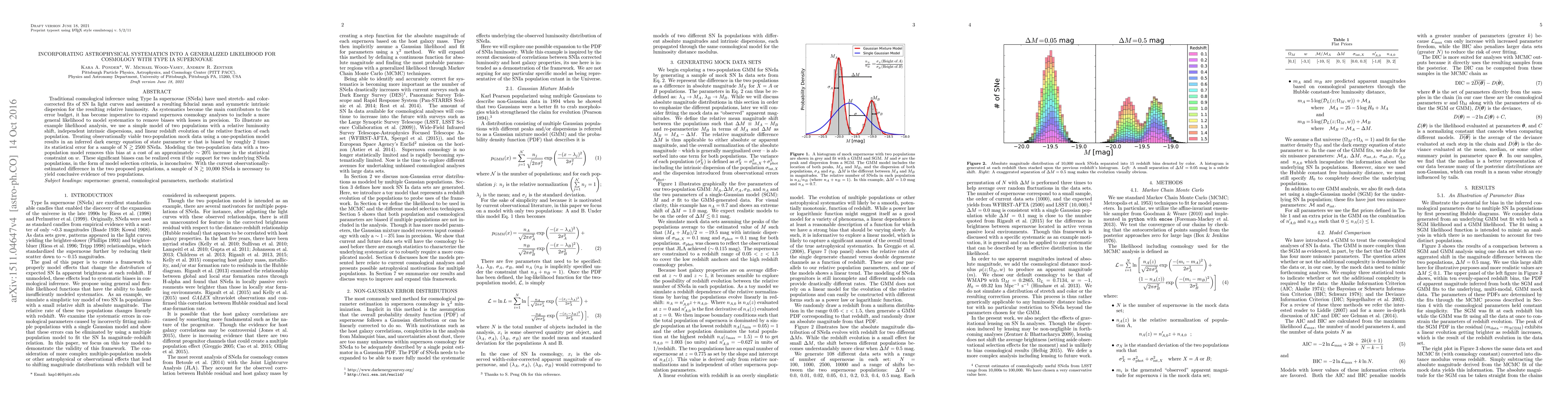 Traditional cosmological inference using Type Ia supernovae (SNeIa) have used stretch- and color-corrected fits of SN Ia light curves and assumed a resulting fiducial mean and symmetric intrinsic dispersion for the resulting relative luminosity. As systematics become the main contributors to the error budget, it has become imperative to expand supernova cosmology analyses to include a more general likelihood to model systematics to remove biases with losses in precision. To illustrate an example likelihood analysis, we use a simple model of two populations with a relative luminosity shift, independent intrinsic dispersions, and linear redshift evolution of the relative fraction of each population. Treating observationally viable two-population mock data using a one-population model results in an inferred dark energy equation of state parameter $w$ that is biased by roughly 2 times its statistical error for a sample of N $ \gtrsim$ 2500 SNeIa. Modeling the two-population data with a two-population model removes this bias at a cost of an approximately $\sim20\%$ increase in the statistical constraint on $w$. These significant biases can be realized even if the support for two underlying SNeIa populations, in the form of model selection criteria, is inconclusive. With the current observationally-estimated difference in the two proposed populations, a sample of N $ \gtrsim$ 10,000 SNeIa is necessary to yield conclusive evidence of two populations.