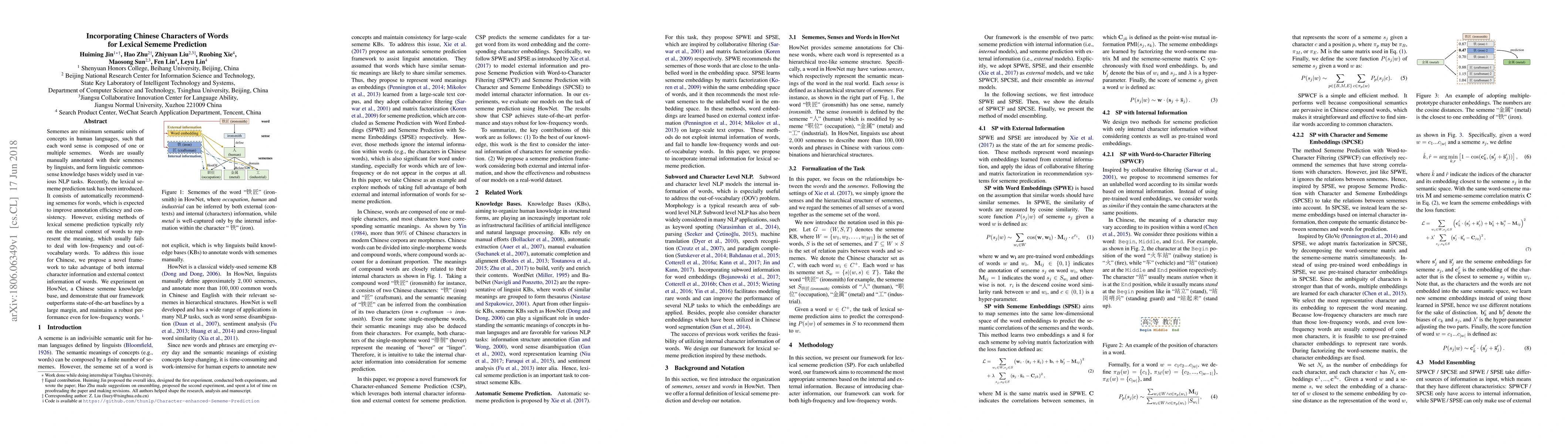 This paper proposes a novel framework for lexical sememe prediction in Chinese that leverages both internal character information and external context to improve annotation efficiency and consistency, especially for low-frequency words. Experimental results on HowNet show that the framework outperforms existing methods, demonstrating robust performance.