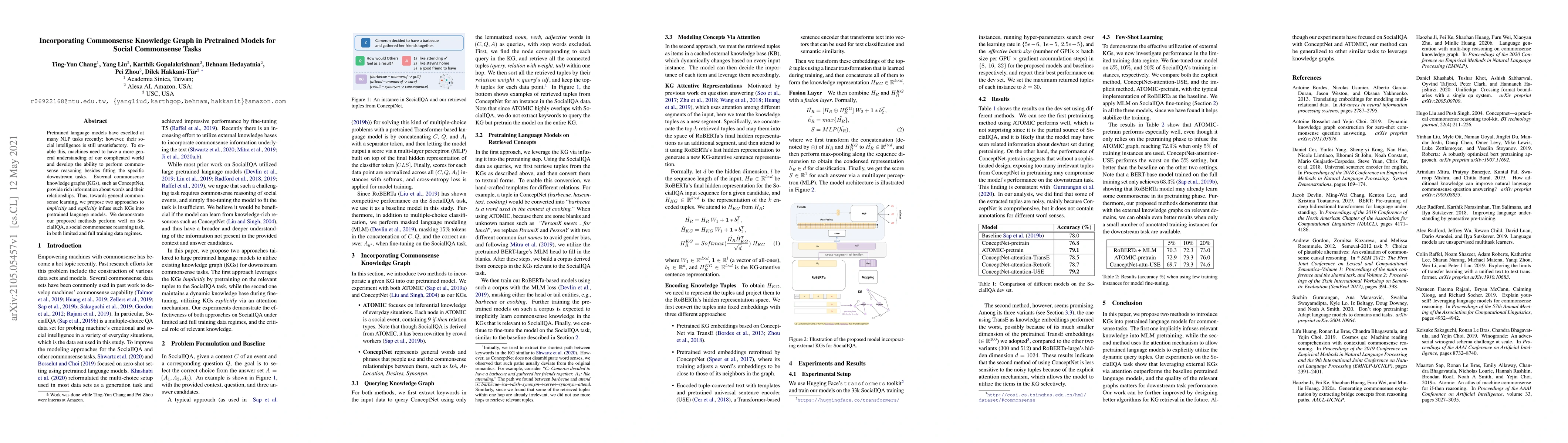 This paper proposes methods to integrate commonsense knowledge graphs into pretrained language models to enhance social commonsense reasoning. The approaches, both implicit and explicit, show improved performance on the SocialIQA task under various training data conditions.