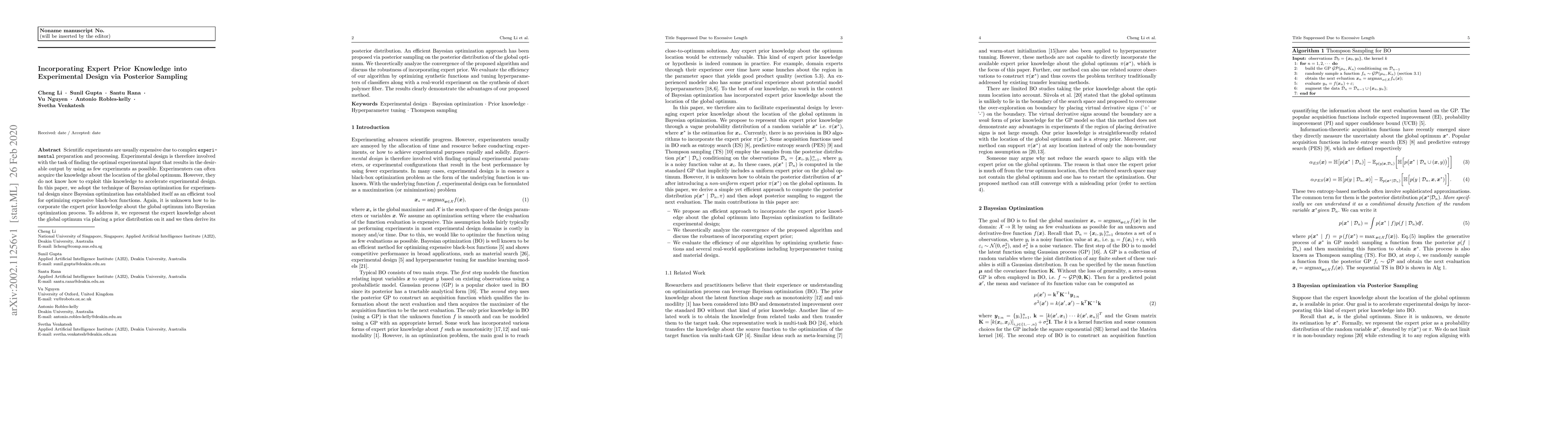 This paper proposes a Bayesian optimization method to incorporate expert prior knowledge into experimental design, aiming to find optimal experimental inputs with minimal experiments. The method involves placing a prior distribution on expert knowledge and using posterior sampling to efficiently optimize expensive black-box functions, demonstrating improved performance through synthetic and real-world experiments.