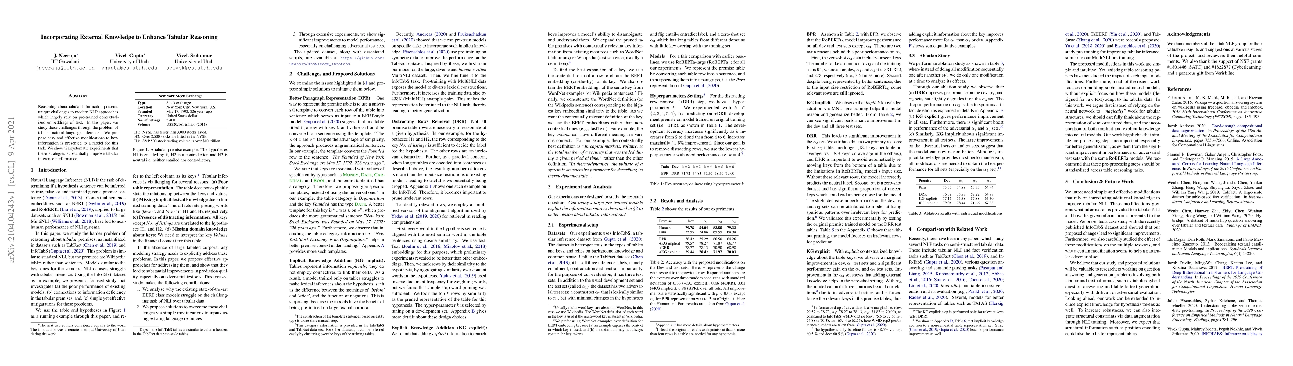 Researchers propose modifications to present tabular information to models for better natural language inference performance, significantly improving results in experiments.