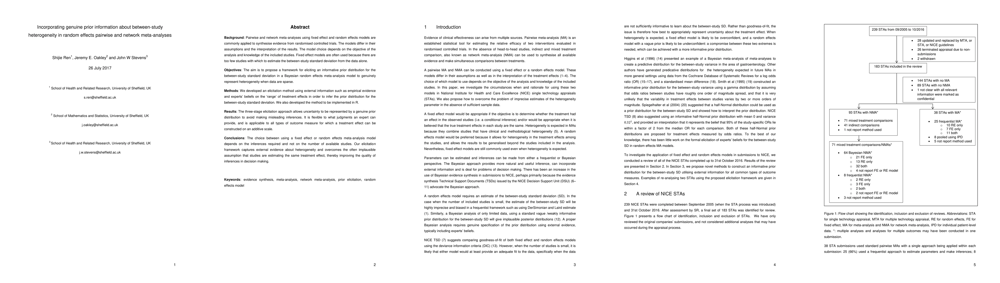 Background: Pairwise and network meta-analyses using fixed effect and random effects models are commonly applied to synthesise evidence from randomised controlled trials. The models differ in their assumptions and the interpretation of the results. The model choice depends on the objective of the analysis and knowledge of the included studies. Fixed effect models are often used because there are too few studies with which to estimate the between-study standard deviation from the data alone. Objectives: The aim is to propose a framework for eliciting an informative prior distribution for the between-study standard deviation in a Bayesian random effects meta-analysis model to genuinely represent heterogeneity when data are sparse. Methods: We developed an elicitation method using external information such as empirical evidence and experts' beliefs on the 'range' of treatment effects in order to infer the prior distribution for the between-study standard deviation. We also developed the method to be implemented in R. Results: The three-stage elicitation approach allows uncertainty to be represented by a genuine prior distribution to avoid making misleading inferences. It is flexible to what judgments an expert can provide, and is applicable to all types of outcome measure for which a treatment effect can be constructed on an additive scale. Conclusions: The choice between using a fixed effect or random effects meta-analysis model depends on the inferences required and not on the number of available studies. Our elicitation framework captures external evidence about heterogeneity and overcomes the often implausible assumption that studies are estimating the same treatment effect, thereby improving the quality of inferences in decision making.