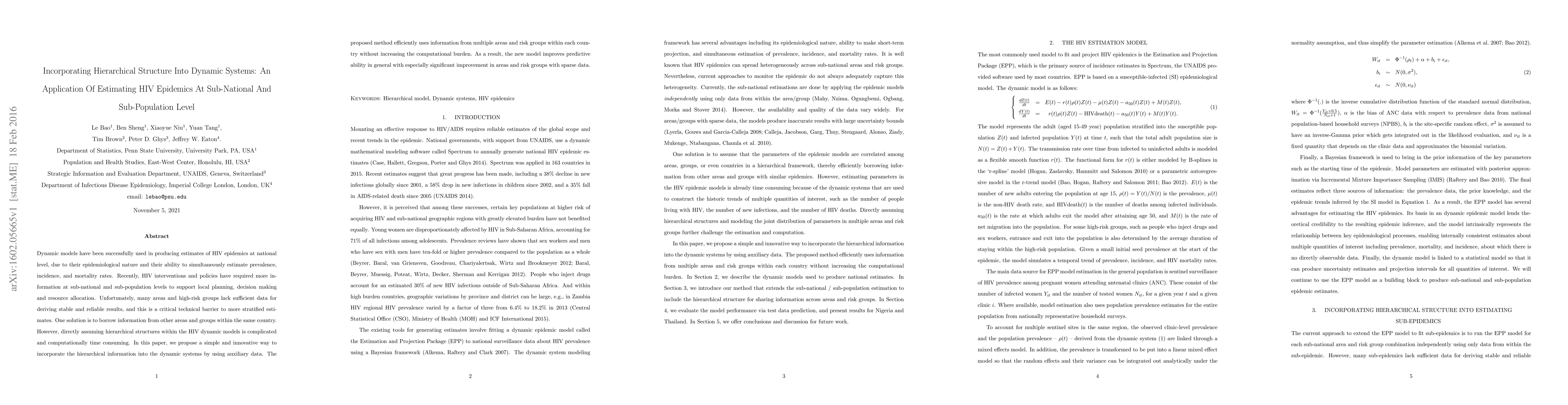This paper proposes a method to enhance dynamic models for estimating HIV epidemics by incorporating hierarchical structures, using auxiliary data to borrow information from multiple areas and risk groups, thereby improving estimates in data-sparse regions without increasing computational complexity. The new model significantly boosts predictive accuracy, especially for sub-national and sub-population levels.