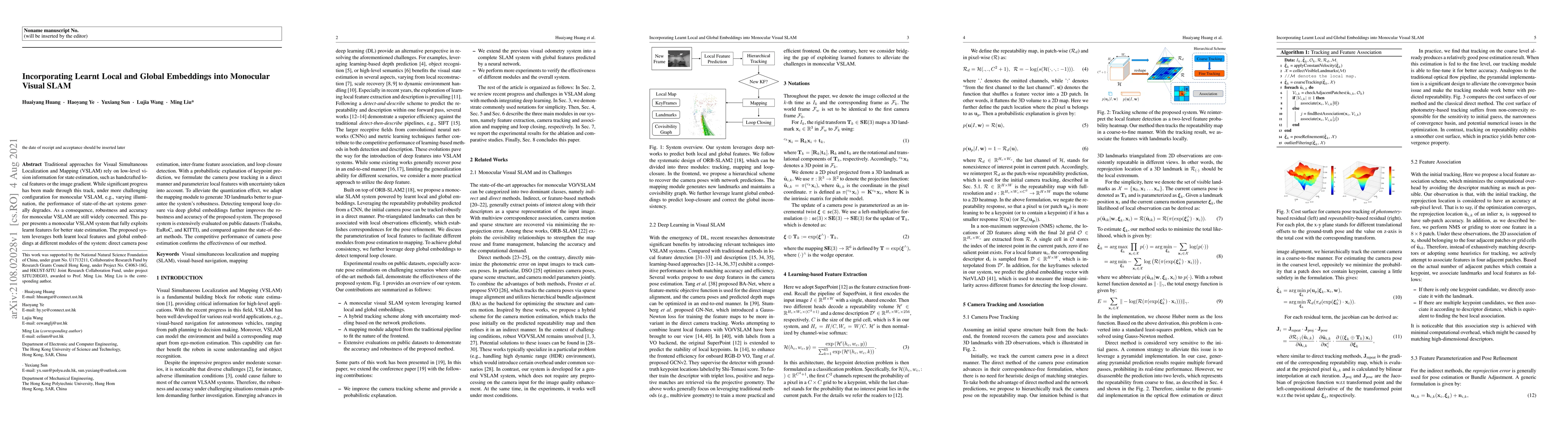 This paper presents a monocular Visual SLAM system that enhances robustness and accuracy by incorporating learnt local and global embeddings for state estimation, including direct camera pose estimation, inter-frame feature association, and loop closure detection. The system demonstrates competitive performance against state-of-the-art methods on public datasets.