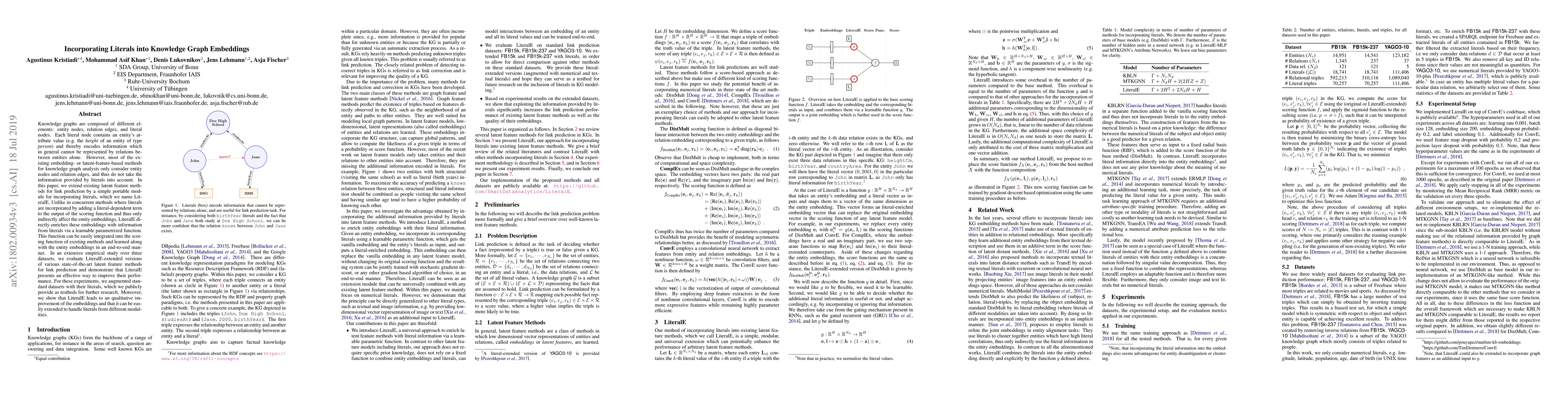 This paper introduces LiteralE, an extension to existing knowledge graph embedding methods that incorporates literal information to improve link prediction. By merging entity embeddings with literal data through a learnable function, LiteralE enhances the performance of several popular embedding models on standard datasets.