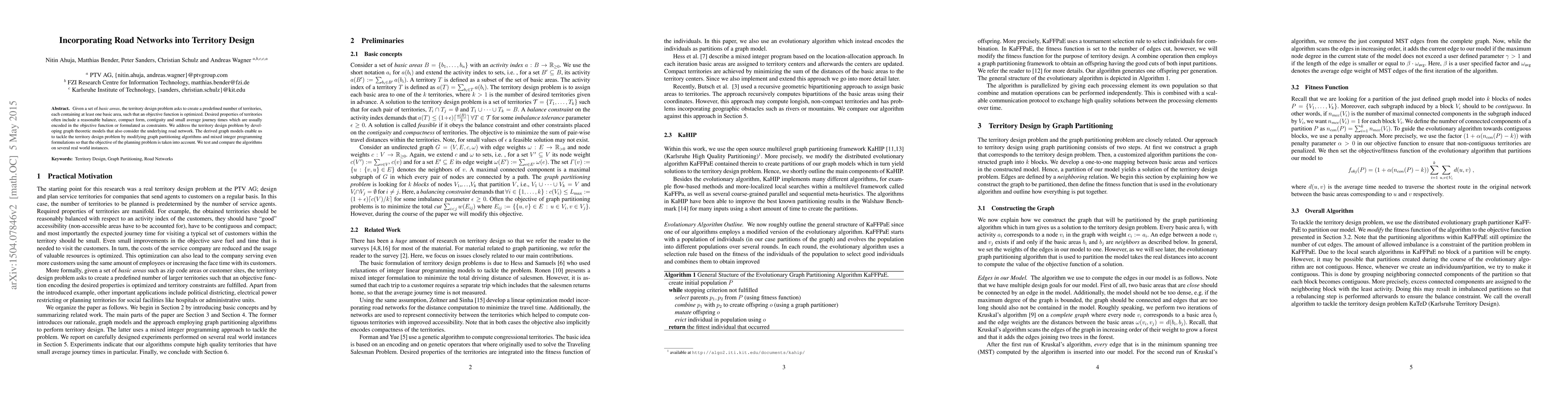 Given a set of basic areas, the territory design problem asks to create a predefined number of territories, each containing at least one basic area, such that an objective function is optimized. Desired properties of territories often include a reasonable balance, compact form, contiguity and small average journey times which are usually encoded in the objective function or formulated as constraints. We address the territory design problem by developing graph theoretic models that also consider the underlying road network. The derived graph models enable us to tackle the territory design problem by modifying graph partitioning algorithms and mixed integer programming formulations so that the objective of the planning problem is taken into account. We test and compare the algorithms on several real world instances.