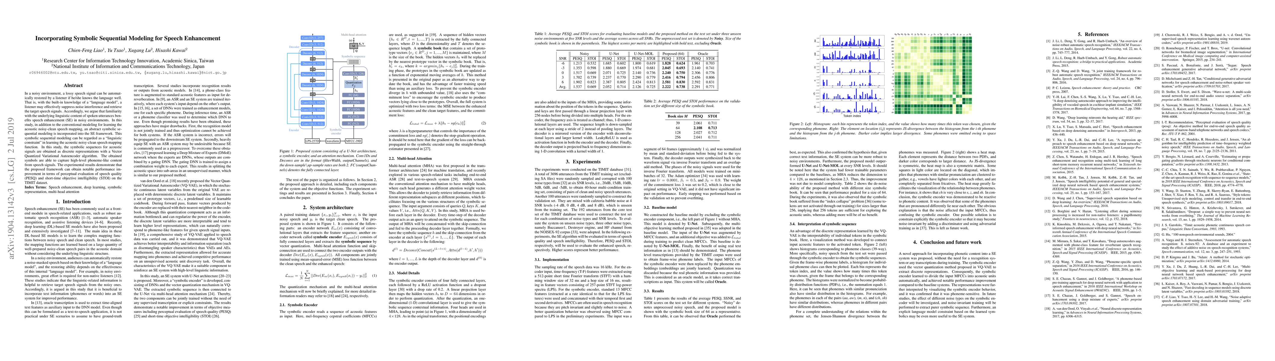 In a noisy environment, a lossy speech signal can be automatically restored by a listener if he/she knows the language well. That is, with the built-in knowledge of a "language model", a listener may effectively suppress noise interference and retrieve the target speech signals. Accordingly, we argue that familiarity with the underlying linguistic content of spoken utterances benefits speech enhancement (SE) in noisy environments. In this study, in addition to the conventional modeling for learning the acoustic noisy-clean speech mapping, an abstract symbolic sequential modeling is incorporated into the SE framework. This symbolic sequential modeling can be regarded as a "linguistic constraint" in learning the acoustic noisy-clean speech mapping function. In this study, the symbolic sequences for acoustic signals are obtained as discrete representations with a Vector Quantized Variational Autoencoder algorithm. The obtained symbols are able to capture high-level phoneme-like content from speech signals. The experimental results demonstrate that the proposed framework can obtain notable performance improvement in terms of perceptual evaluation of speech quality (PESQ) and short-time objective intelligibility (STOI) on the TIMIT dataset.