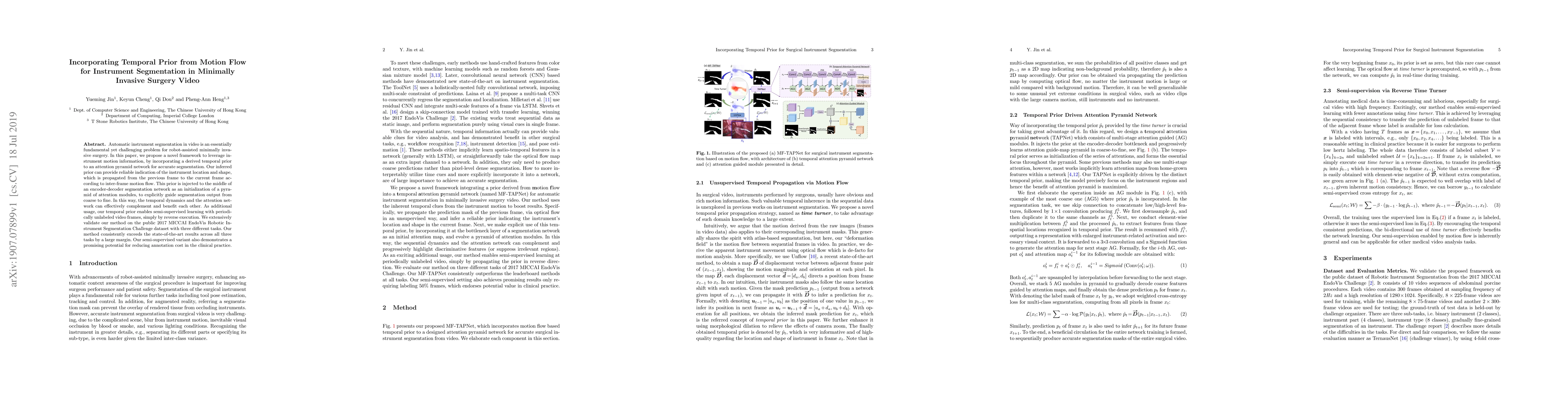 This paper introduces a novel framework for instrument segmentation in minimally invasive surgery videos by leveraging temporal priors derived from motion flow. The proposed method injects these temporal priors into an attention pyramid network to improve segmentation accuracy, outperforming state-of-the-art methods and enabling semi-supervised learning to reduce annotation costs.